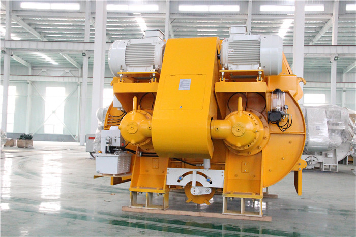 雙臥軸強(qiáng)制式混凝土攪拌機(jī)的攪拌原理決定了在攪拌過程中混凝土大部分被堆積在兩個攪拌軸之間,使得攪拌臂和葉片與底部襯板之間的磨損降低。